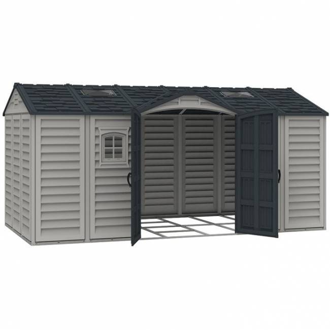 Apex Pro - это новейший хозблок из премиум серии решений для хранения Duramax. Пластиковый хозблок Apex Pro комплектуется большим двустворчатым входом и двойными боковыми дверями. Благодаря такому решению, вы можете получить доступ к хранилищу с любой удобной стороны. Сарай не ржавеет, не гниет и не нуждается в покраске и обслуживании. Дизайн хозблока разработан для создания внутри достаточного уровня вентиляции и достаточной яркости света. Это достигается за счет размещения окон на крыше и боковой стороне хозблока. Apex Pro создани из жаростойкого пластика и обладает усиленной стальной конструкцией. Внимание! Зимой с пластикового хоз.блока необходимо счищать снежную шапку, во избежании повреждения конструкции при превышении рекомендованной нагрузки.Если вы планируете использовать Vinyl Garage в качестве гаража, рекомендуем уточнить подходит ли Ваше транспортное средство по размерам.Характеристики:Внутренние размеры: ДхШхВ 234х417х185 смВнутренняя высота помещения: 185 смРазмер дверей: ДхВ 154х182 смРазмеры: ДхШхВ 248х484х234 смВес: 481 кг